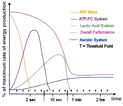Creatine is primarily involved in muscle contraction and works on the ATP-CP Energy System. Once the Creatine Phosphate stores are depleted, the body mainly uses glucose as an energy source. The breakdown of glucose or glycogen during high intensity exercise results in the production of lactate and hydrogen ions (Lactic Acid System, see Figure 1). The accumulation of hydrogen ions is the cause of muscle acidification. The body can buffer these ions to a certain extent with the help of carnosine. But as the training continues, the levels of carnosine are not sufficient enough anymore, which leads to muscle fatigue and decrease in strength. Beta-alanine supplementation increases carnosine concentrations in muscle tissue.